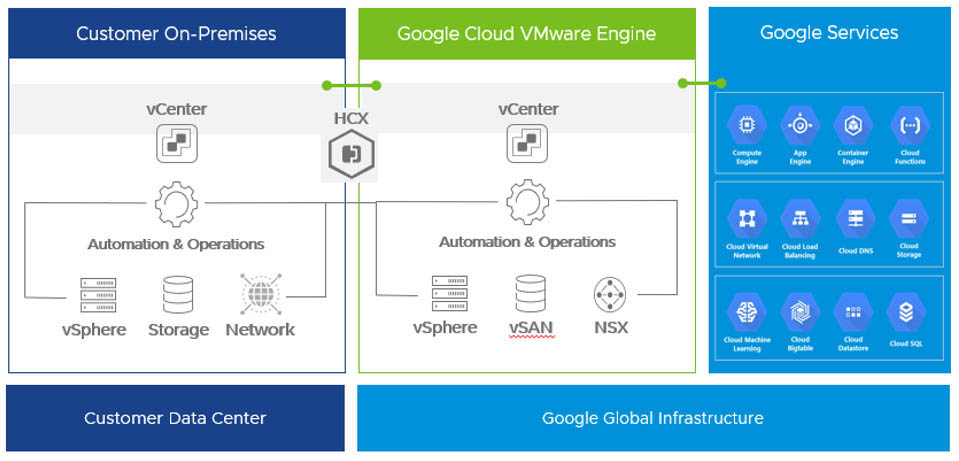 With the same architecture and operational experience on-premises and in the cloud, IT teams can quickly drive business value and leave the complexitites of on-prem infrastructure behind. Once in the cloud customers can immediately begin creating hybrid applications that enable their business to be more agile with secure access to Google services like BigQuery and extend their existing disaster recovery, backup, and storage services. With Google Cloud VMware Engine, enterprises can rapidly migrate, extend, and modernise their applications in the cloud.